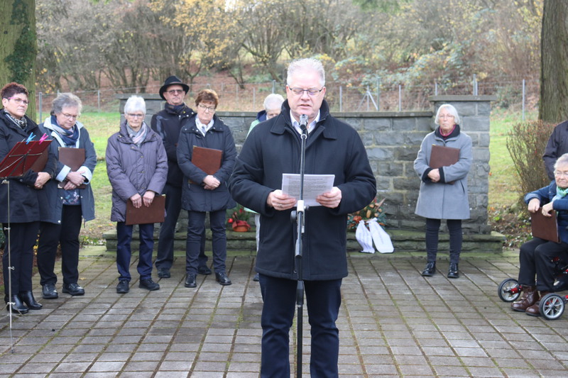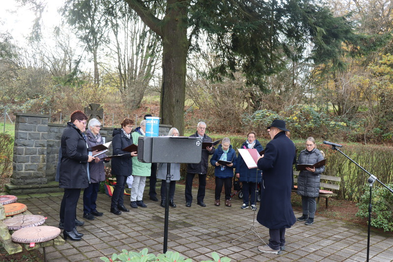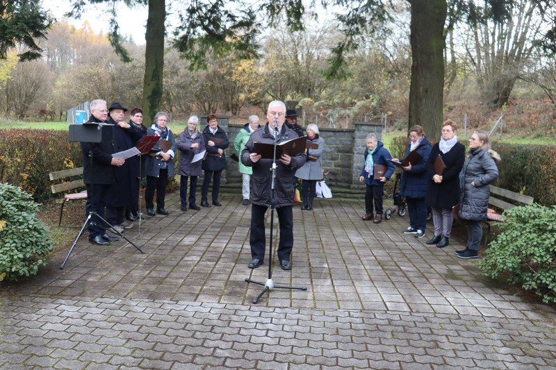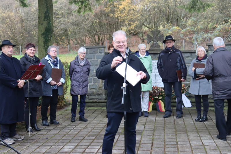 Zwischen den Vorträgen und der Kranzniederlegung durch die Beigeordneten und dem Ortsbürgermeister sang der Gesangsverein „Heimattreue“ 1887 Muscheid unter der Leitung von Dietmar Löffler.