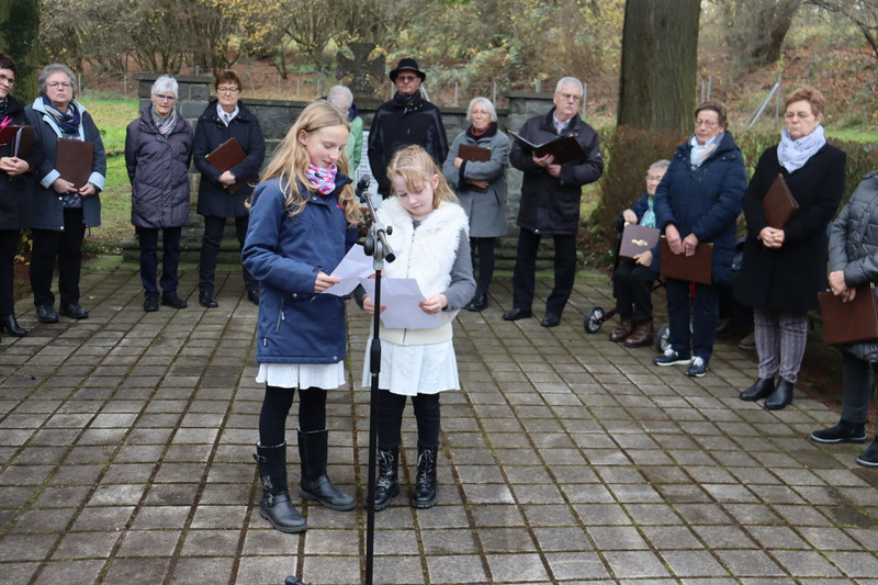 Die beiden Kinder, Melina Rubens und Amelia Neufeld, trugen zwei bewegende Gedichte vor, die die Zuhörer tief berührten. Ihre Worte erinnerten an die Opfer von Krieg und Gewalt und mahnten zu Frieden