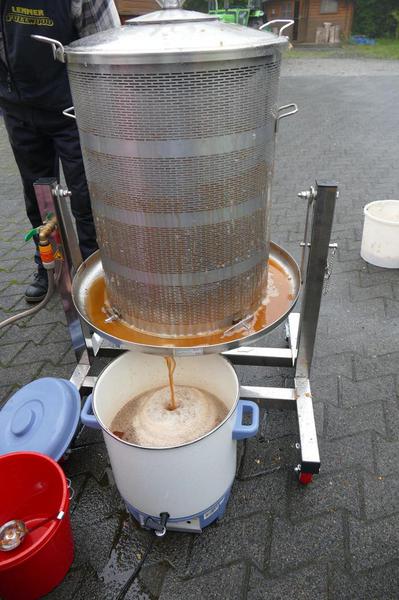100-Liter-Stahlfass der Kita ca. zur Hälfte mit Apfelsaft zu füllen, so wurden in diesem Jahr in dieser Zeit deutlich mehr als die 100 Liter gepresst. Nachdem das Fass weitgehend gefüllt war, wurde