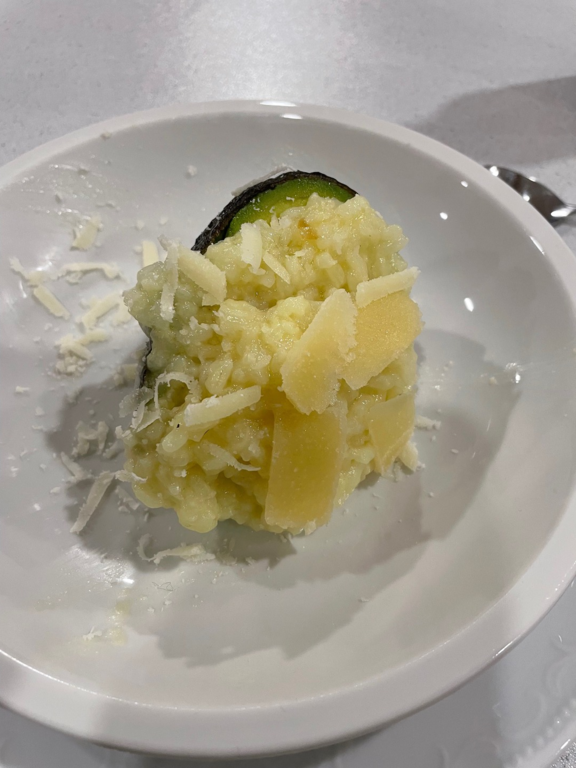Vorspeise Zitronenrisotto auf Avocado , zum Hauptgang wurde Schweinefilet im Speckmantel an Schalottensauce, Kräuter Gnocchi und Paprika Gemüse serviert, zum Abschluss rundete das