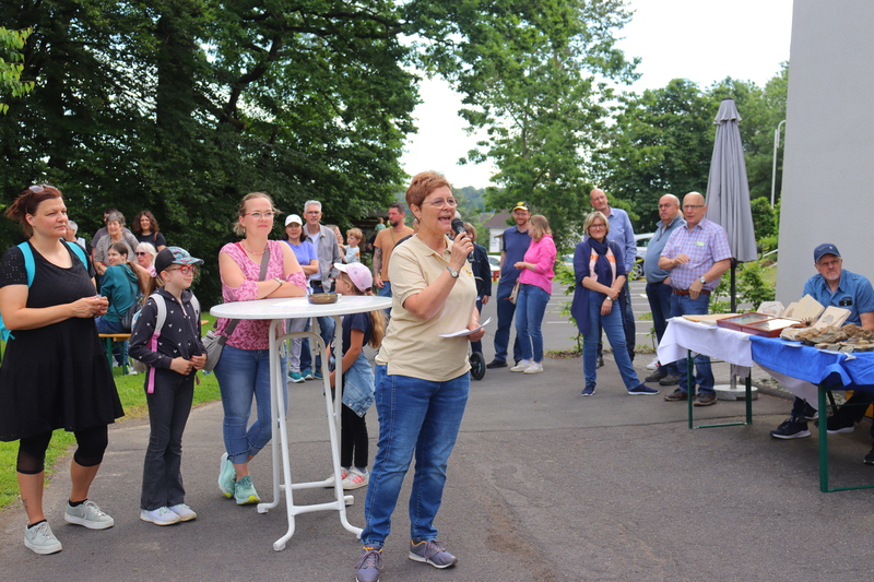 sowie durch das zugehörige Museum erläuterten die Herren Hübinger und Volz die Entstehung des mitteldevonischen Stromatoporenriffs im Devonmeer. Zu erkennen sind neben den Stromatoporen, einer