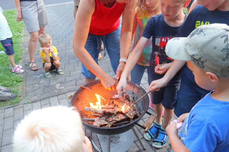 Tiere des Waldes. Als Dank erhielten alle Kinder kleine Holzfiguren als Geschenk. Den Abschluss fand die Wanderung schließlich bei Stockbrot, Würstchen, warmen und kalten Getränken, weiteren