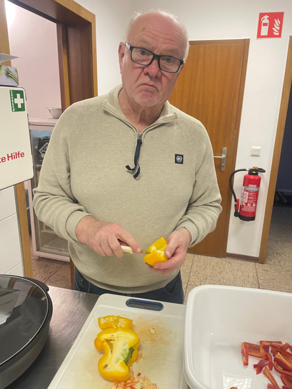 Gekocht wurde in der Küche des Gemeinschaftshauses in Dürrholz. Nach getaner Arbeit wurde verkostet und alle waren von dem Ergebnis begeistert. Im Anschluss an das gemeinsame Essen wurde noch die